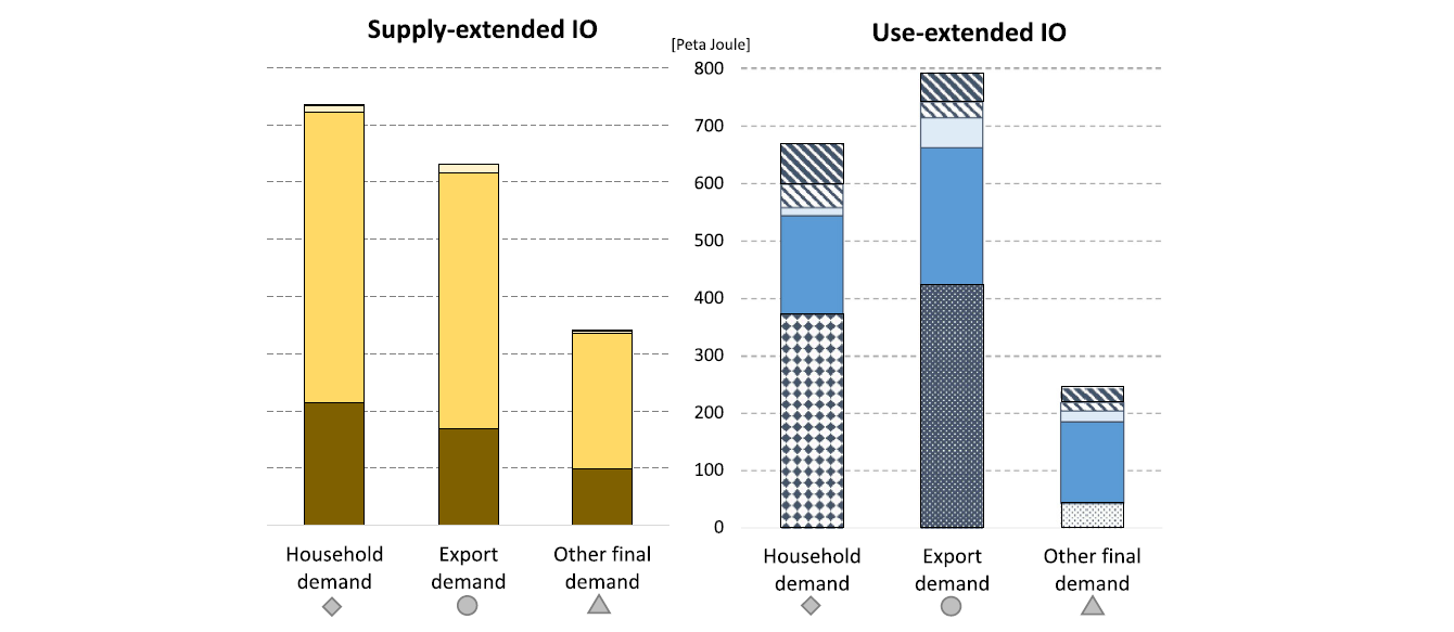 The results of our study show that integrating energy data from an energy supply versus an energy use perspective can lead to significant deviations in the results, when calculating energy footprints. For example, in the investigated case of Austria, households have the highest energy footprint in the energy supply perspective, whereas exports show the highest energy footprint in the case energy use data are applied. We also show that the energy footprints of certain economic sectors can vary by several orders of magnitude depending on how the energy data is compiled.